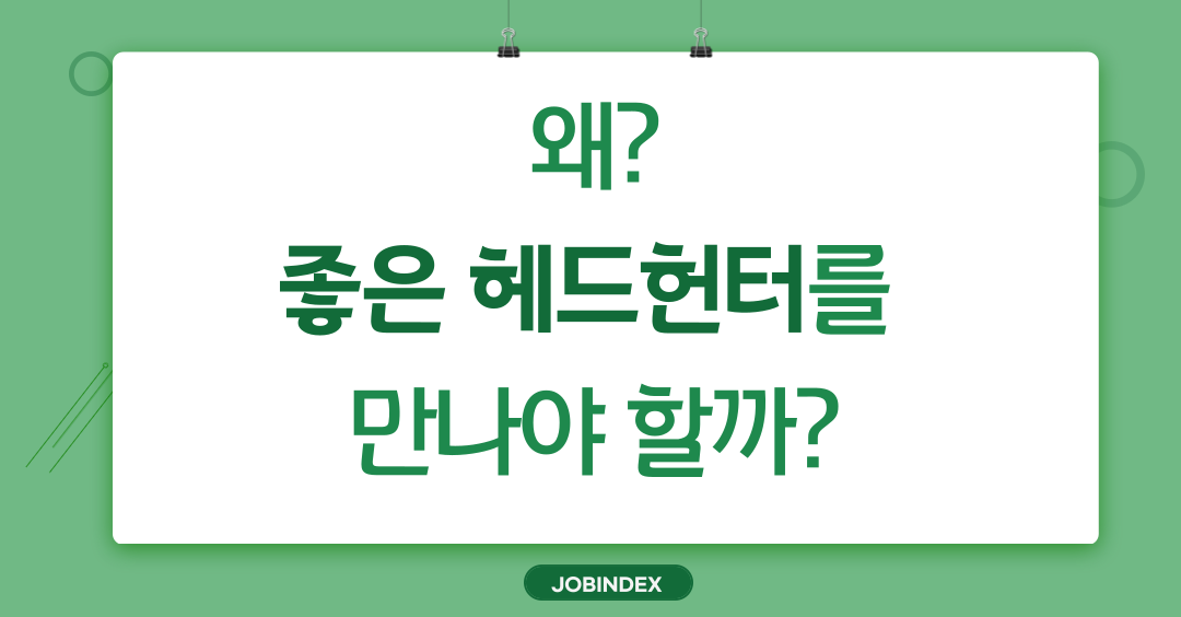 그러나 나와 잘 맞는 헤드헌터를 만난다면 좋은 직장으로 이직할 가능성도 커집니다. 그래서 이번 시간에는 왜? 좋은 헤드헌터를 만나야 하는지 이유를 알아보고 좋은 헤드헌터를 찾는 방법을 알아보아요!