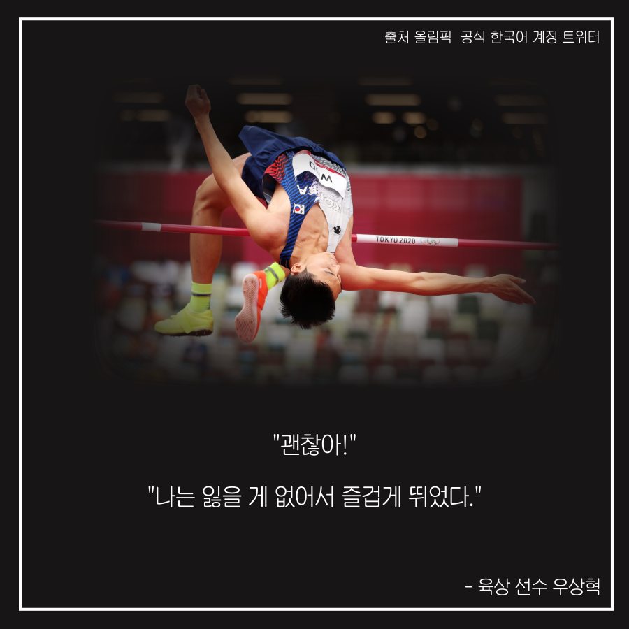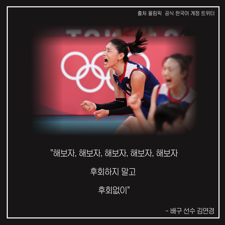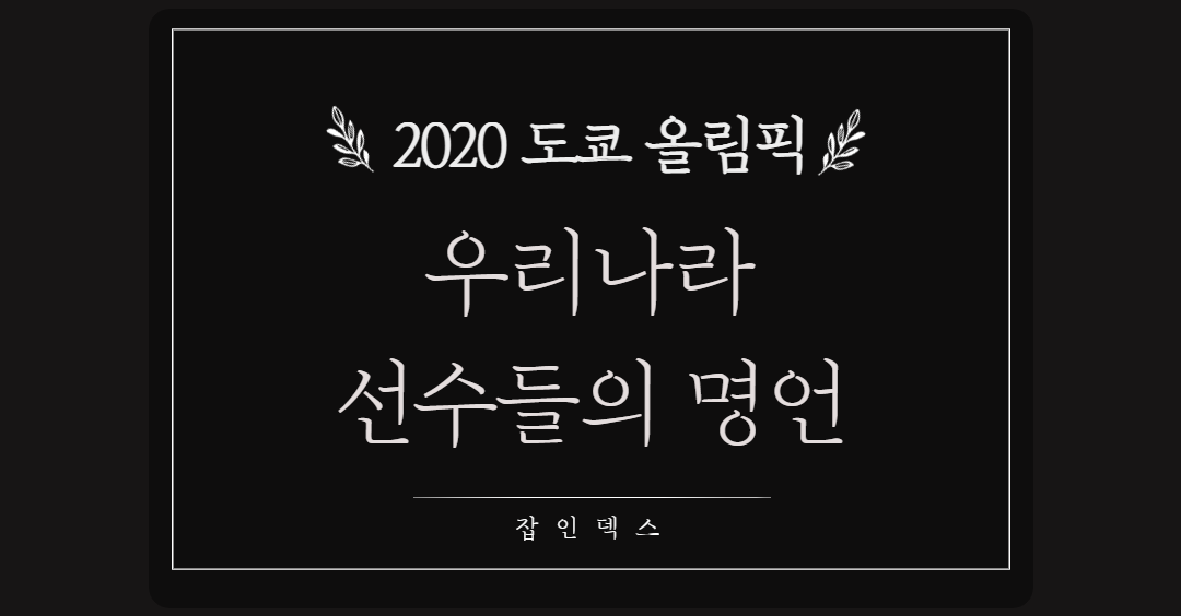 메달 획득 여부와 상관없이 자신의 도전에 만족하고, 다음 올림픽을 준비하는 선수들의 태도가 멋있게 느껴지는데요, 그래서 준비한 이번 주제는 "2020 도쿄 올림픽 우리나라 선수들의 명언"입니다.