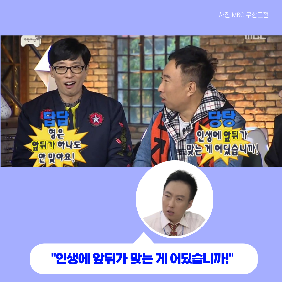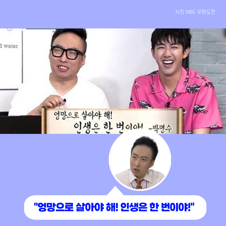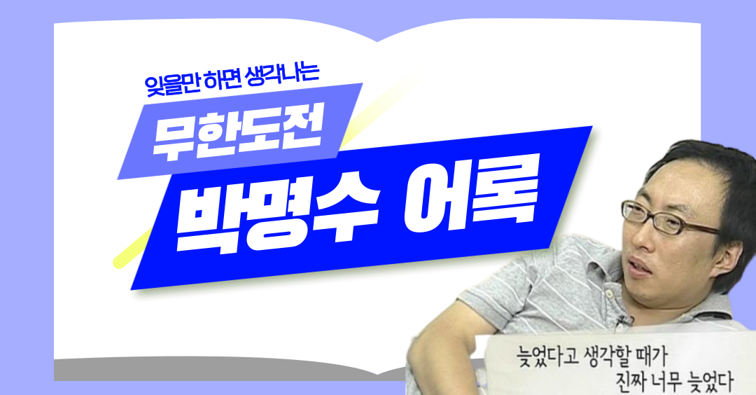 잊을만 하면 생각나는 무한도전 박명수 어록 8,205 2 2 무한도전에서 박명수는 많은 어록이랑 짤을 남겼는데요, 잊을만하면 다시 생각나는 무한도전 박명수 어록 한 번 들어볼까요?😁 📢"늦었다고 생각할 때가 진짜 너무 늦었다." 새로운 기회의 시작 Jobindex `21.08.05 다음글명언 폭격기 강호동 어록 이전글2021 우리나라 경영학과 순위