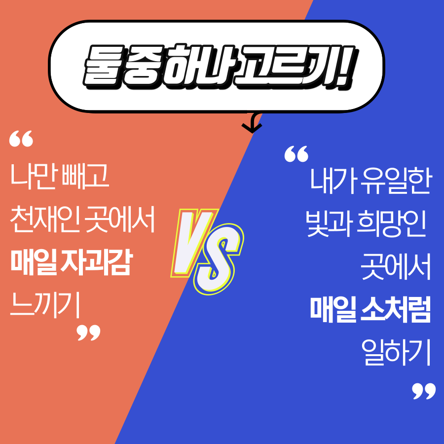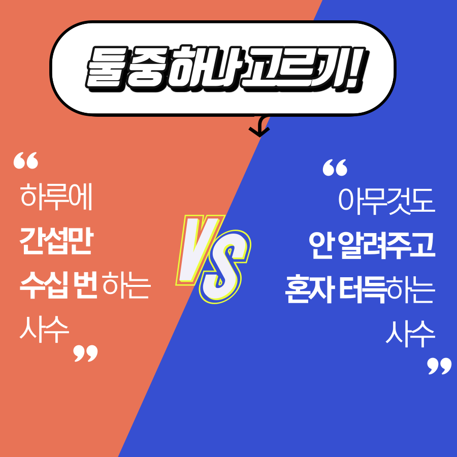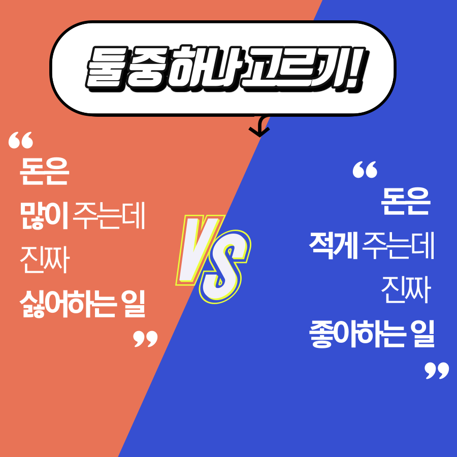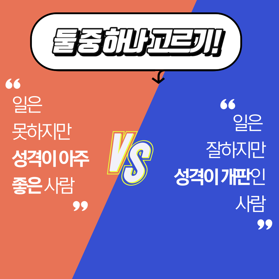 직장인 밸런스 게임 당신의 선택은? 12,397 1 1 밸런스 게임이라고 고르기 어려운 두 가지 질문을 놓고 꼭 한 가지만 선택하는 게임이 유행하고 있습니다. 잡인덱스에서 밸런스 게임 직장인 버전을 준비했는데요, 딱 한 가지만 고른다면 여러분의 선택은 무엇인가요? 🎮 밸런스 게임 START! 🎮 경력직 이직은 JOBINDEX `21.08.10 다음글직장인 트위터 아무말 대잔치 모음 이전글국내 특수가스 공급업체 순위