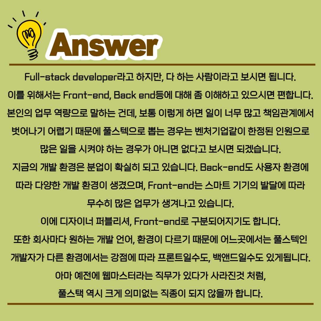 풀스텍 개발자가 하는 업무는 어디서부터 어디까지 일까요?