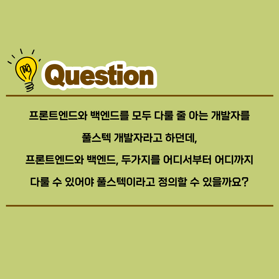 프론트엔드와 백엔드, 두가지를 어디서부터 어디까지 다룰 수 있어야 풀스텍이라고 정의할 수 있을까요?