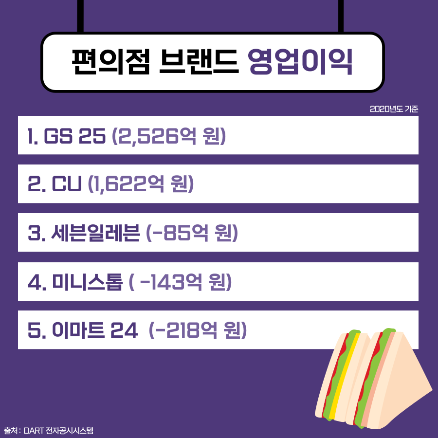 시장 포화 상태에서도 지속적인 변화를 꾀하는 편의점 브랜드의 매출과 영업이익은 어떻게 되는지 그 순위를 알아보겠습니다!