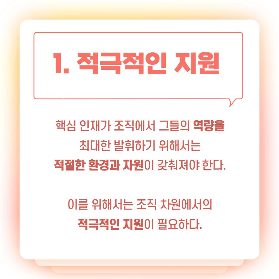 이를 위해서는 조직 차원에서의 노력이 필요한데요, 핵심인재의 성과를 이끌어내는 방법에는 어떤 것이 있는지 알아볼까요?