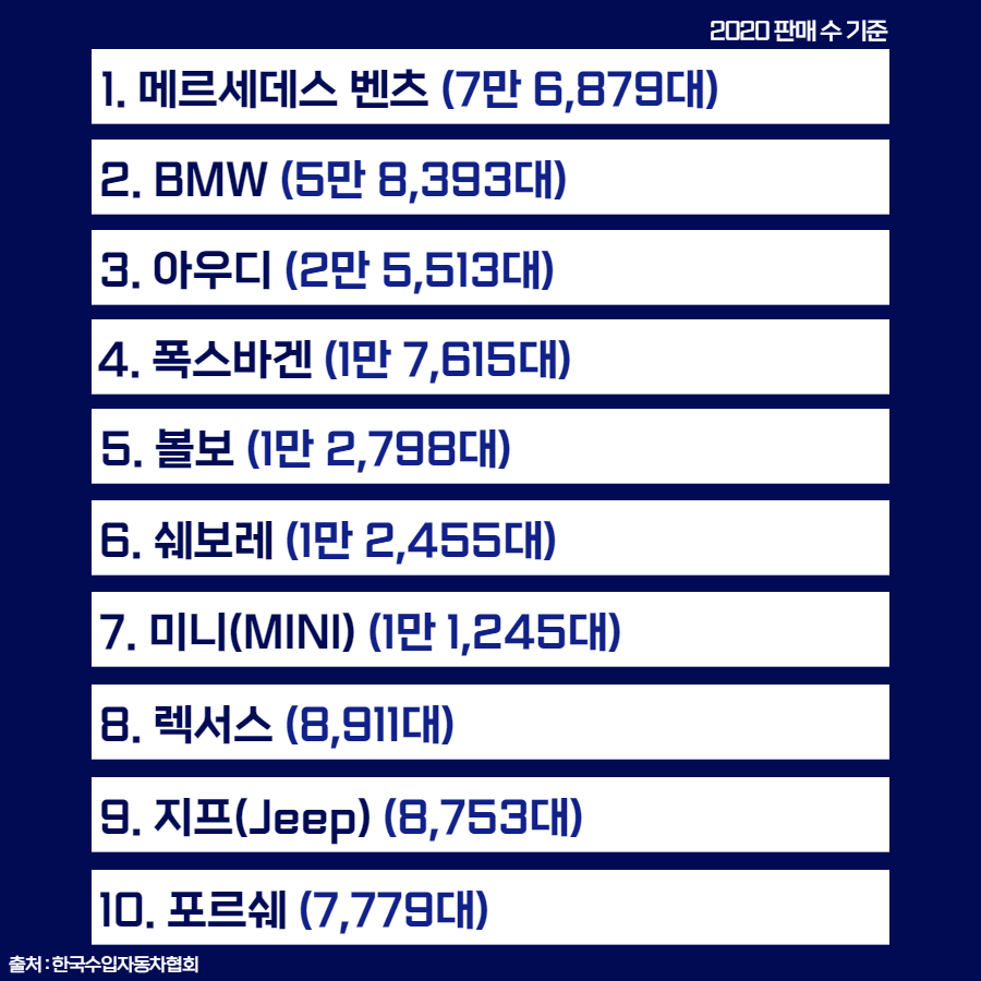 또한 판매에 있어 작년에 수입차 역대 최다 판매를 기록했다고 하는데요, 그렇다면 국내 🚗수입 자동차 시장 판매 및 시장 점유율 순위🚗는 어떻게 되는지 알아봅시다!