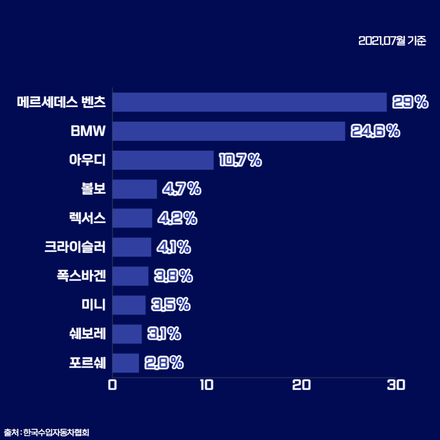 국내 수입 자동차 시장 점유율 순위