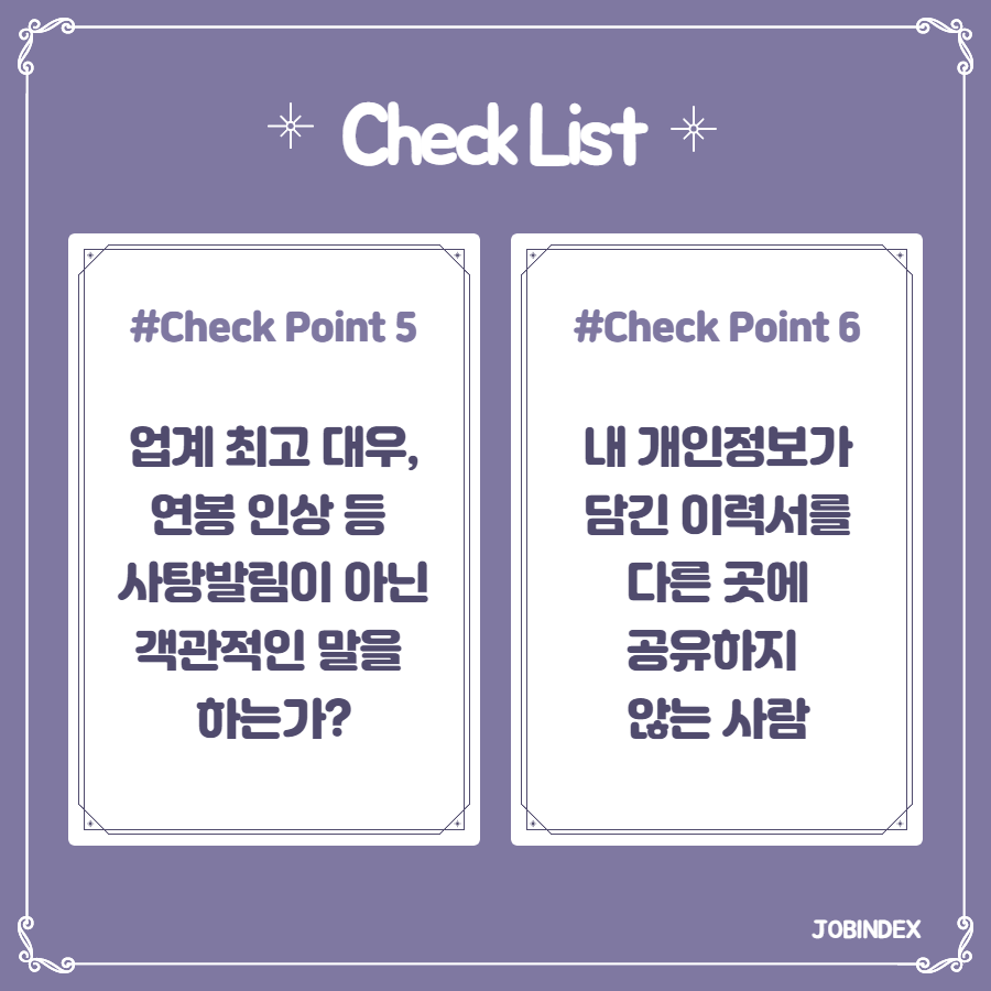 이직은 자신의 커리어에 있어서 중요한 순간이기 때문에 신중하게 결정해야 하는데요, 이직에 도움이 되는 좋은 헤드헌터인지 파악하기 위해서는 다음의 체크 리스트를 한번 활용해보시는 건 어떨까요?