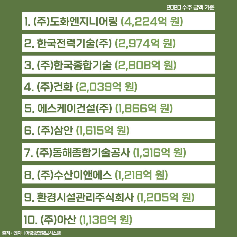 그렇다면, 엔지니어링 회사 수주 실적 TOP 10에는 어느 곳이 있을지 알아봅시다!