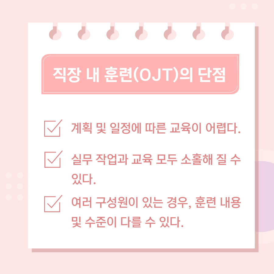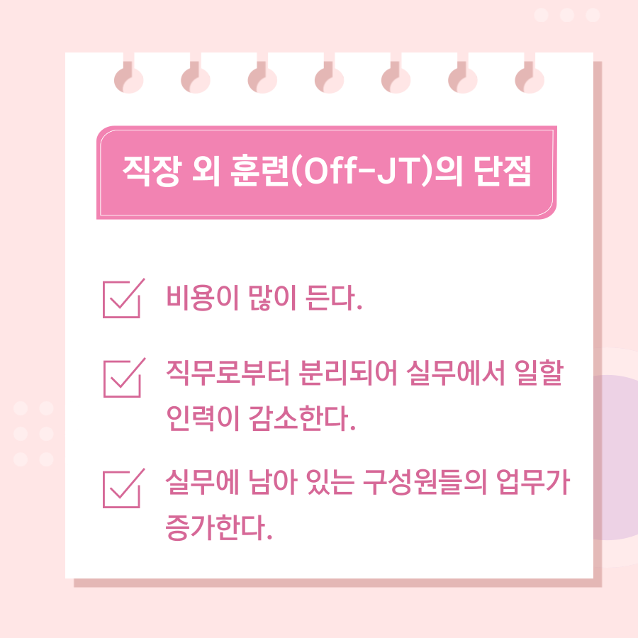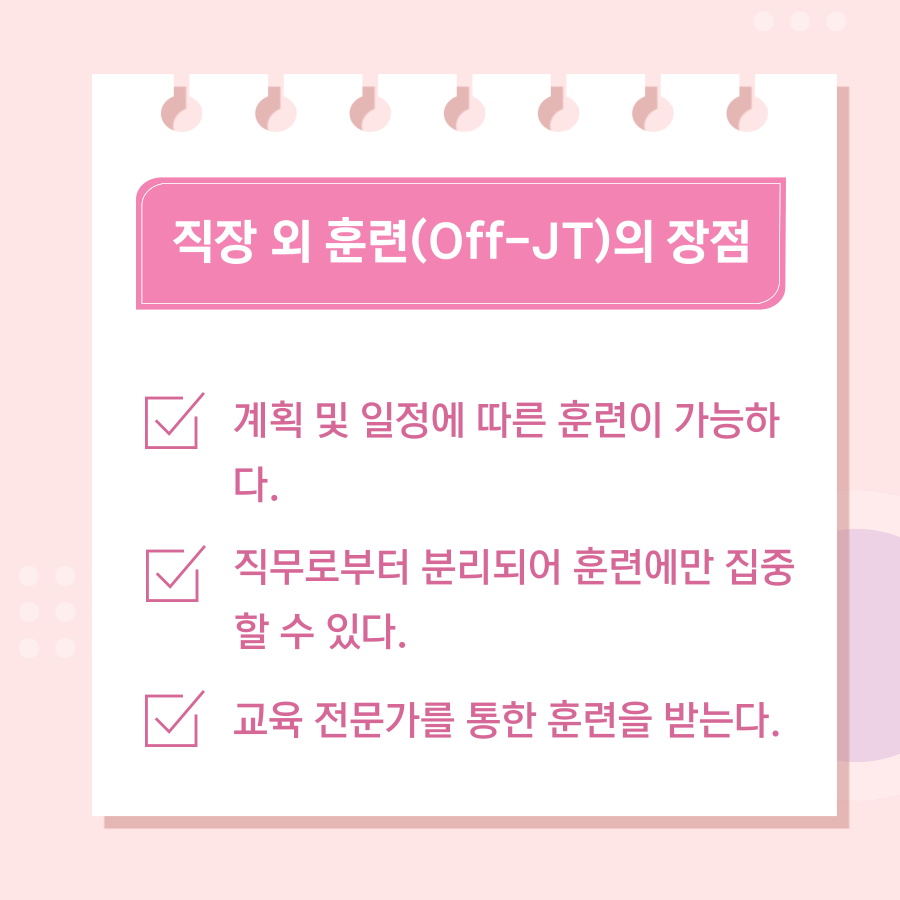 입사를 하게 되면, 직무훈련을 받게 되는데 직무훈련에는 직장 내 훈련(OJT)와 직장 외 훈련(Off-JT)가 있습니다.