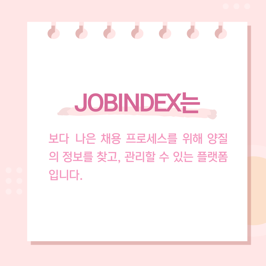 JOBINDEX는 보다 나은 채용 프로세스를 위해 양질의 정보를 찾고, 관리할 수 있는 플랫폼입니다.