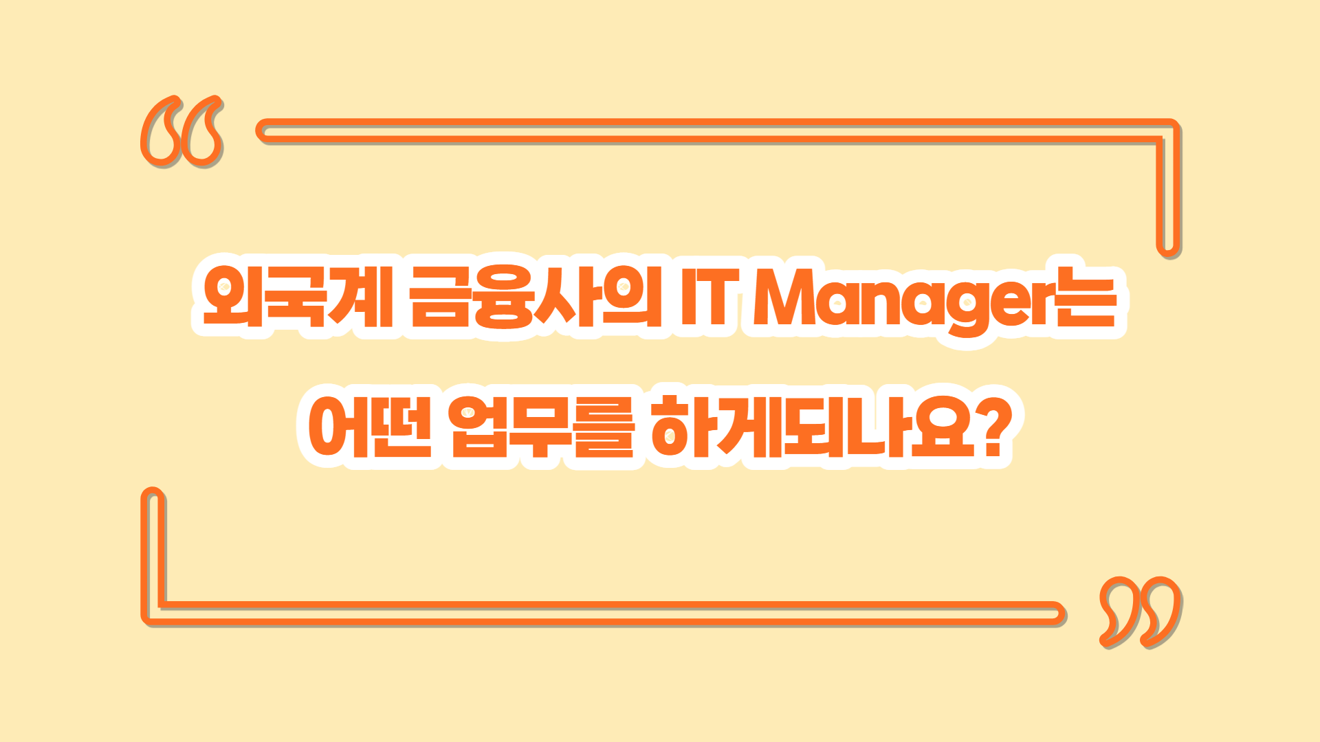 Q. 외국계 금융사의 IT Manager는 어떤 업무를 하게되나요?