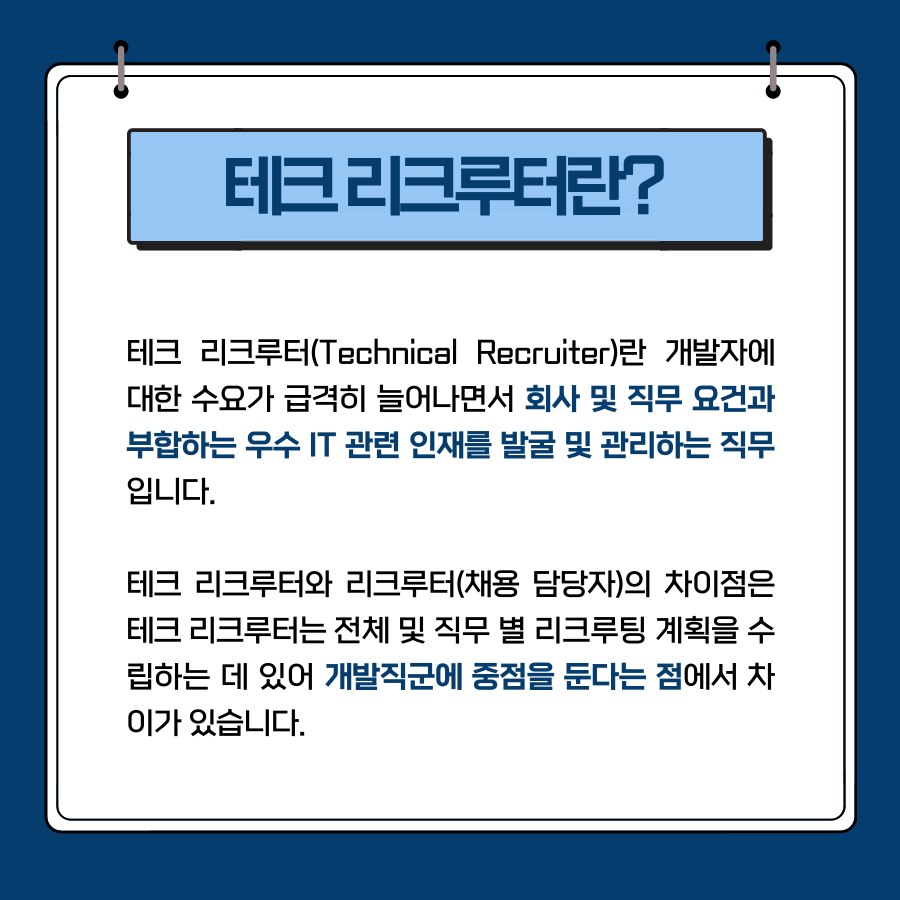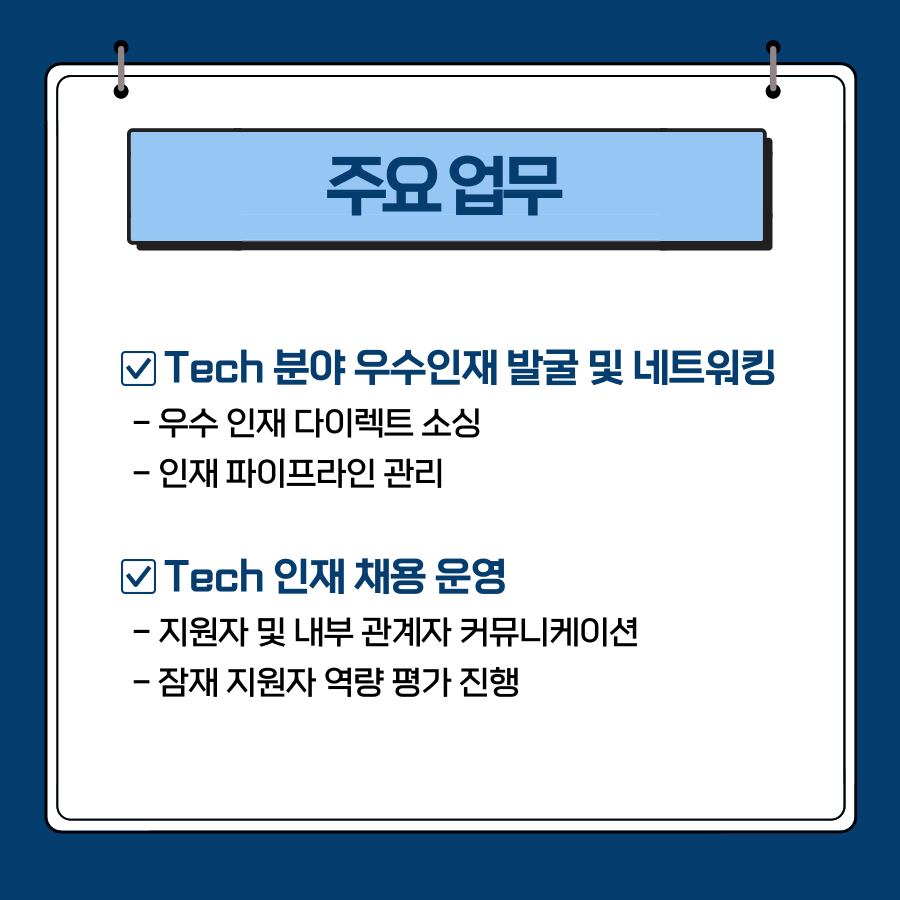 오늘은 테크 리쿠루터는 어떤 일을 하고 있는지와 Tech 채용 기획 직무에 있어 관련 채용을 진행하고 있는 현대자동차의 Tech채용 기획 및 운영 채용 공고를 중심으로 살펴보겠습니다!