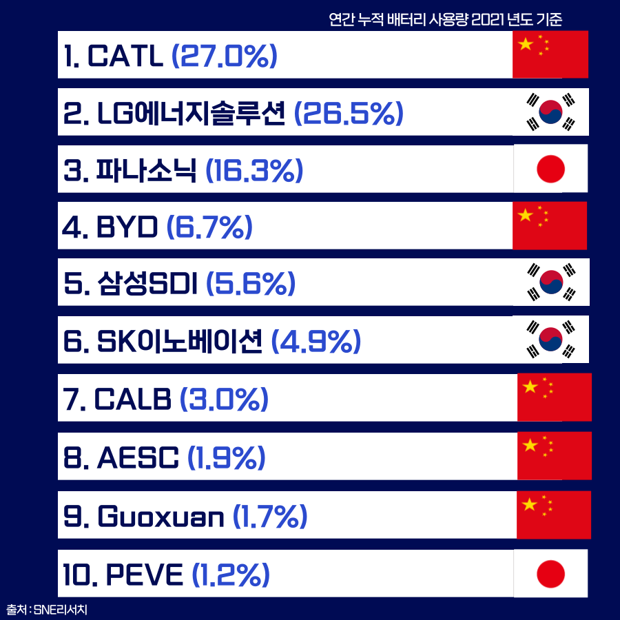 그렇다면, 세계 전기차 시장 배터리 점유율 순위는 어떻게될까요?