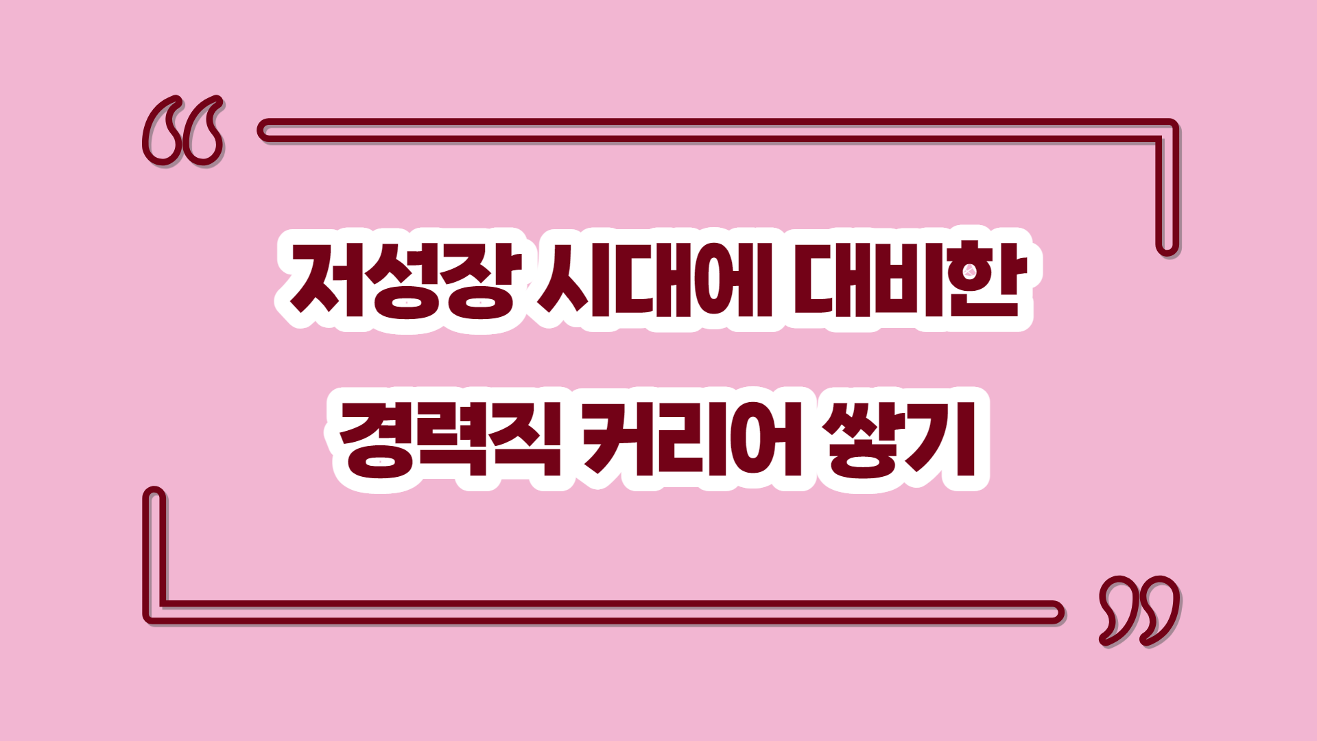 저성장 시대에 대비하여 커리어를 쌓기위해 어떤 준비를 해야할까요?