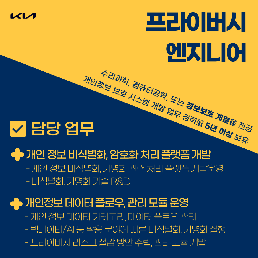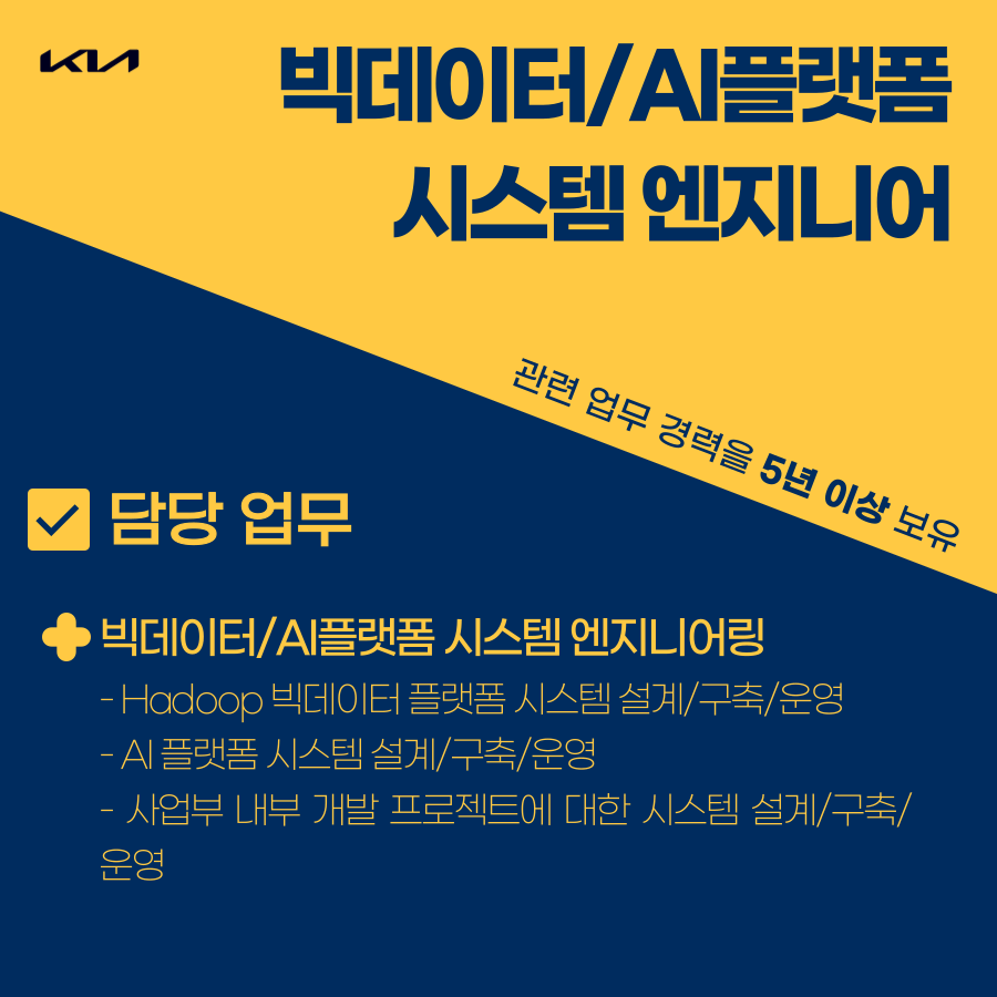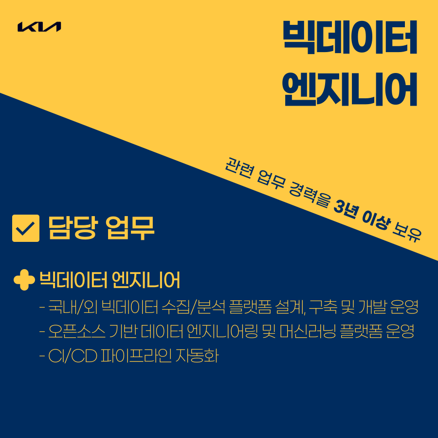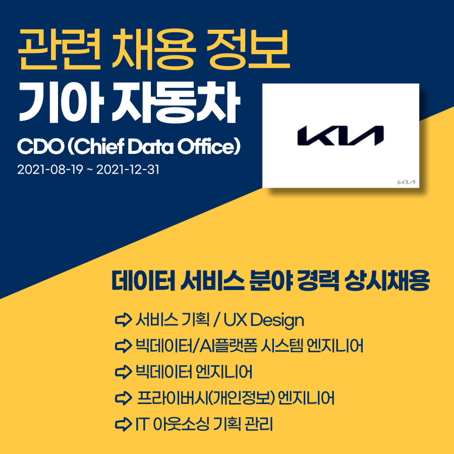👉 기아 자동차 데이터 서비스 분야 경력 상시 채용 지원하러 가기!