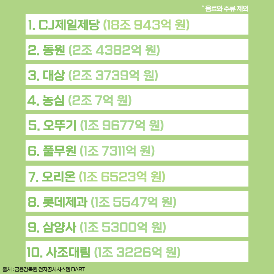 그래서 준비한 이번 주제는 🥗국내 식품기업 3분기 매출 순위 TOP 10🥗입니다.