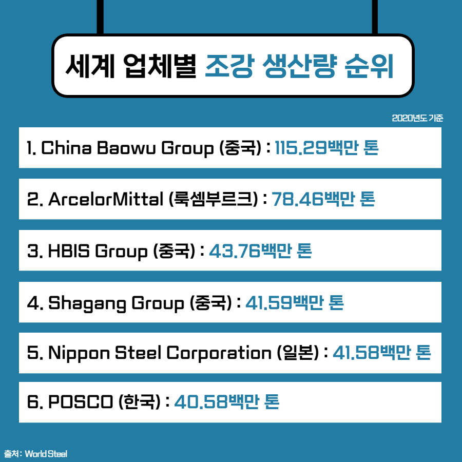 다양하게 활용되는 철강은 글로벌 철강 시장에서 공급이 크게 부족해지면서 국내 철강회사가 호황을 맞이했다고 합니다. 그렇다면, 글로벌 철강회사 시가총액과 조강 생산량 순위를 살펴봄으로써 우리나라 철강회사가 어느 순위에 있는지 확인해 볼까요?