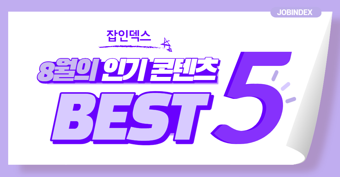 많은 분들께서 본 🏆 잡인덱스의 8월의 인기 콘텐츠 BEST 5 🏆를 준비해봤습니다. 과연, 어떤 콘텐츠가 가장 인기가 많았을지 확인해 볼까요?