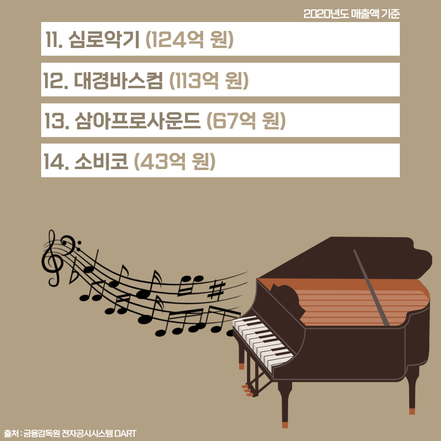 국내 음향기기/악기 업체 매출 순위 TOP 14