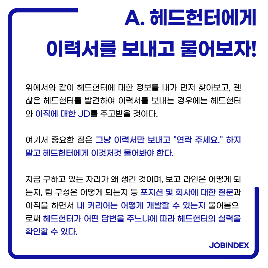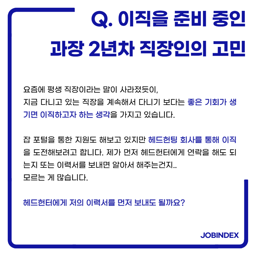 이직하는 방법에는 잡 포털을 통한 지원도 있고, 헤드헌팅을 통한 방법도 있습니다.
