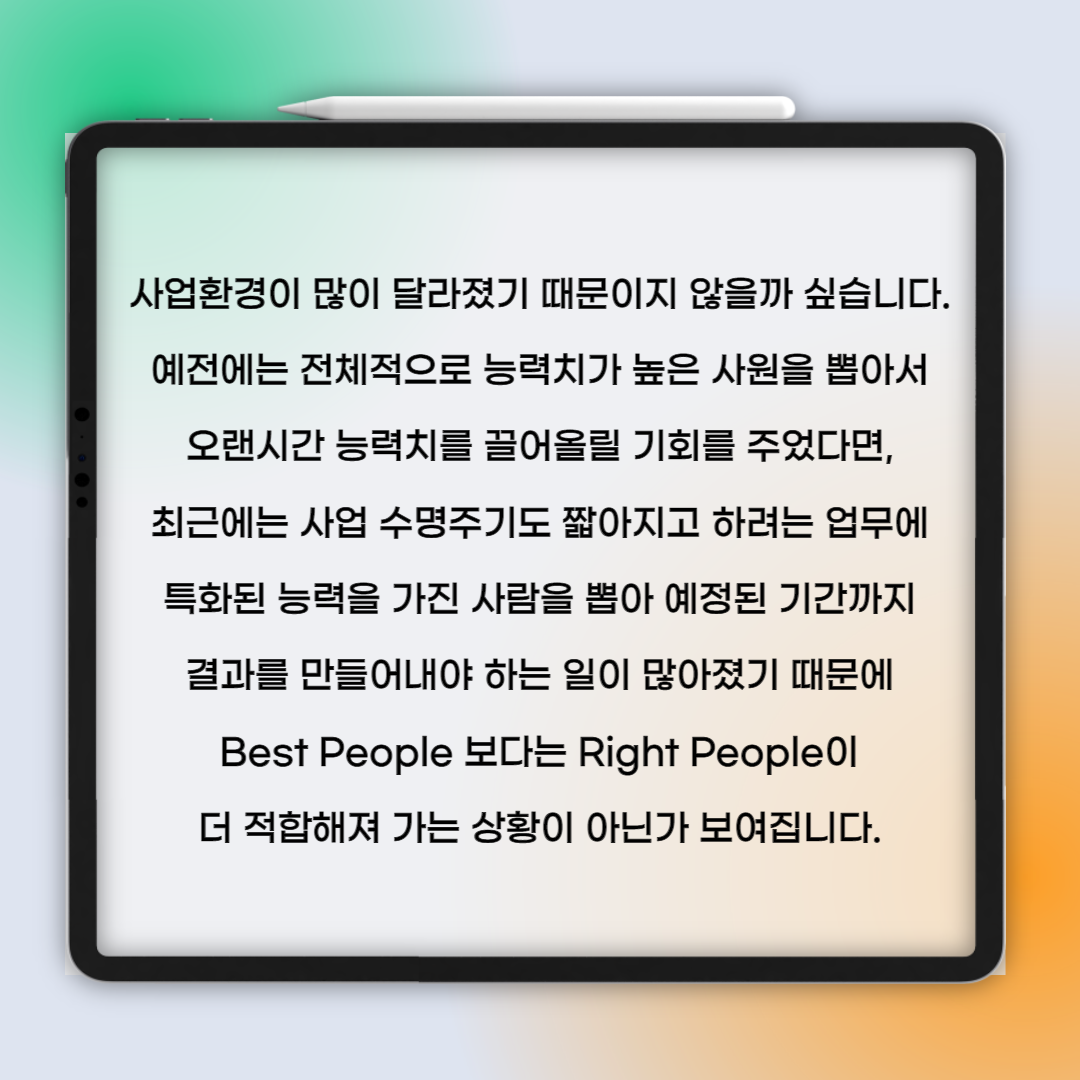 채용을 진행할 때 Best People이 아닌 Right People을 뽑으라고 하는 이유가 무엇일까요?