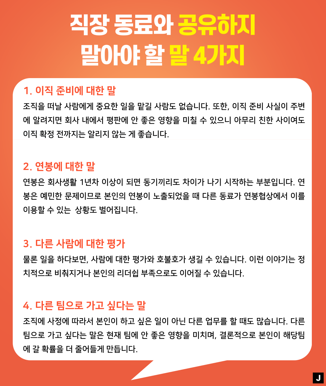 ✅ 직장동료와 공유하지 말아야 할 말 4가지