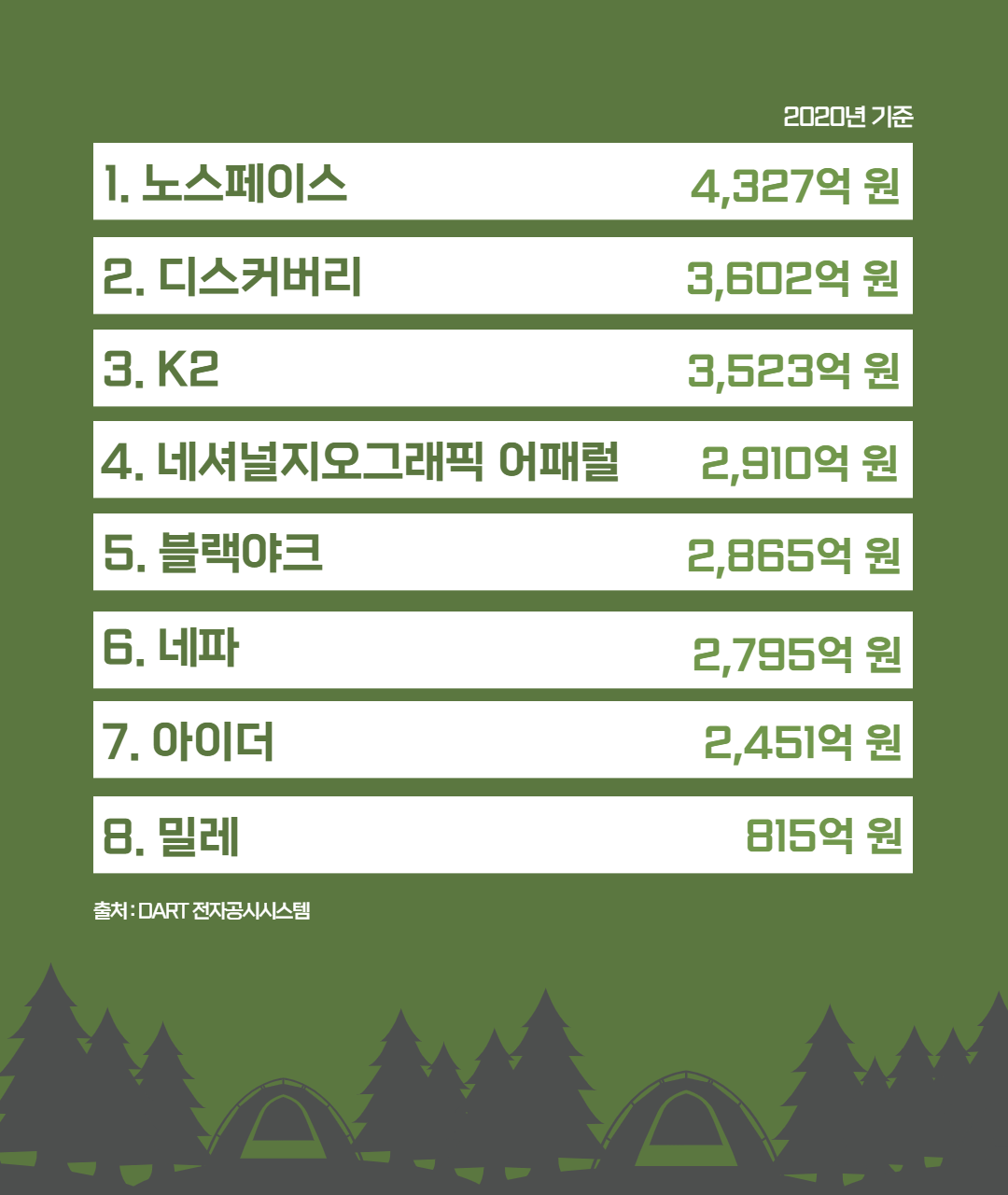 아웃도어 기업(브랜드) 매출 순위 TOP 8
