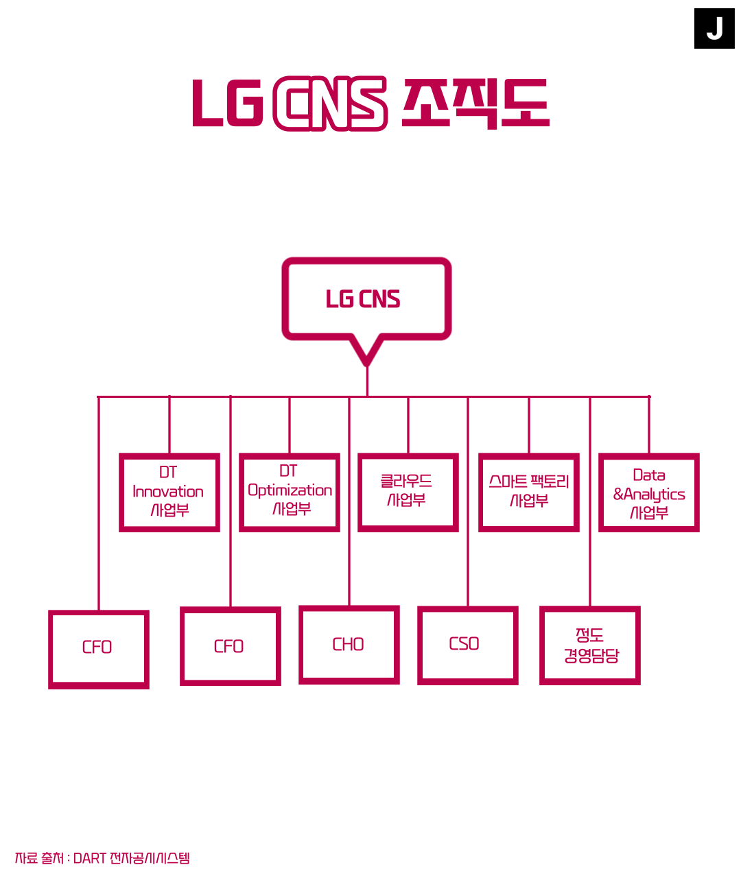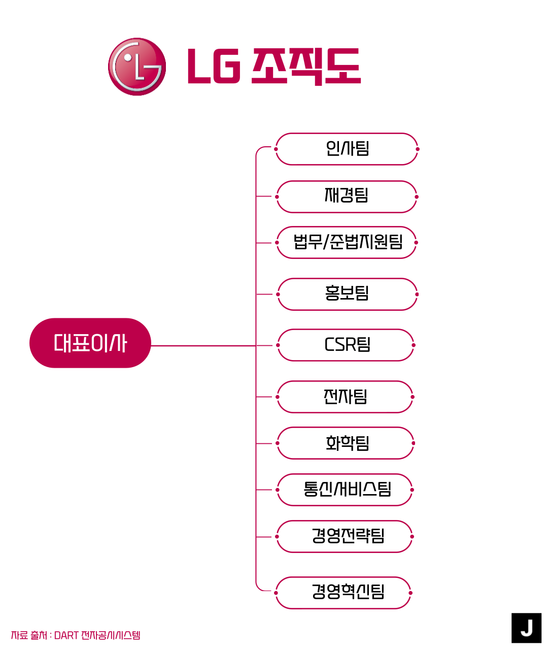 오늘은 LG, LG CNS, LG 화학의 조직도를 준비해 봤습니다. 각 회사의 조직 구성이 어떻게 되어있는지 살펴봅시다!