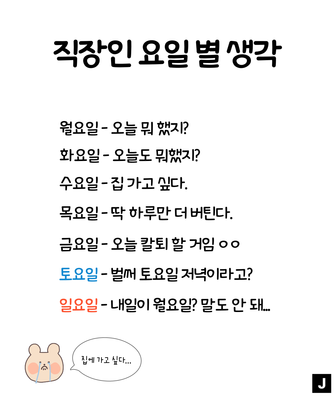 업종과 직무는 달라도 직장인이라면 다들 비슷한 생각을 가지고 살아가는 것 같습니다. 아래의 콘텐츠에서 다들 공감하는 부분이 있는지 함께 보실까요? 😉
