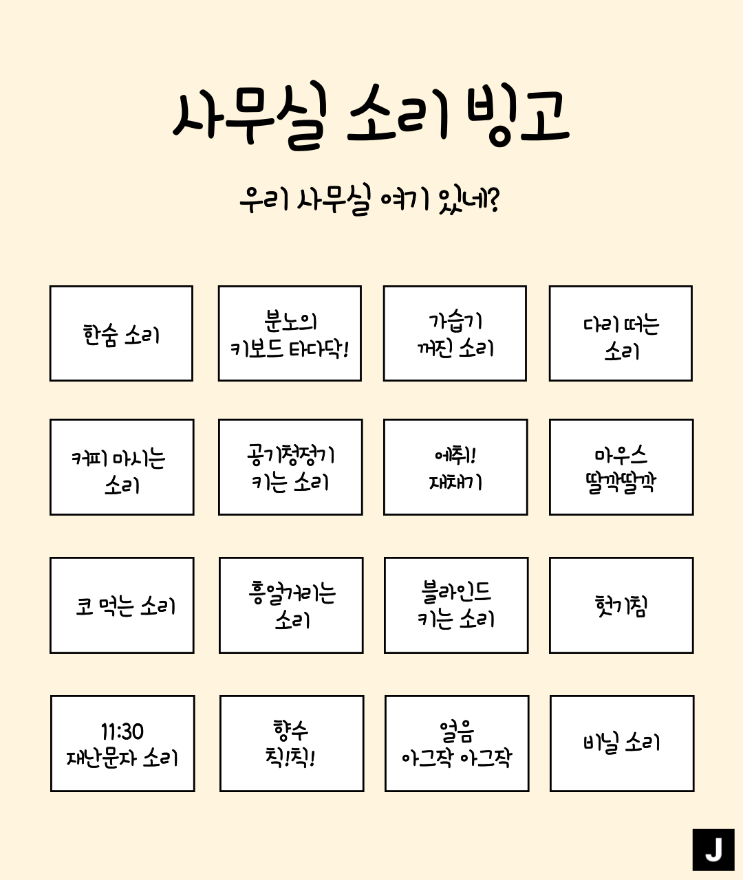 ✅ 사무실 소리 빙고