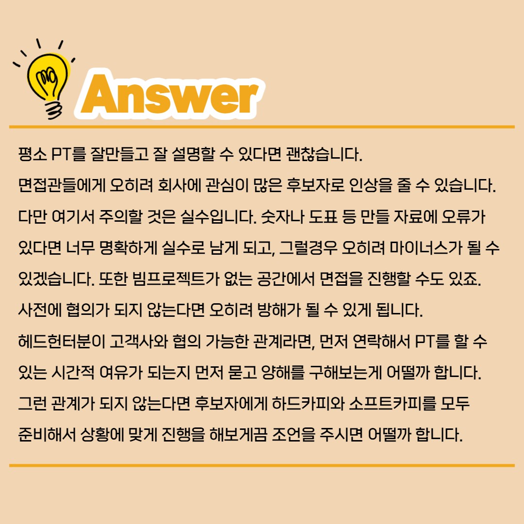 면접 때 PT를 준비하겠다고 하는 후보자, 괜찮을까요?