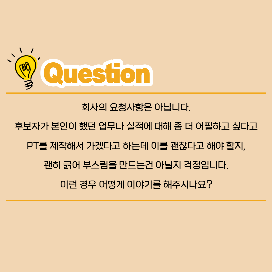 후보자가 본인이 했던 업무나 실적에 대해 좀 더 어필하고 싶다고 PT를 제작해서 가겠다고 하는데 이를 괜찮다고 해야 할지,