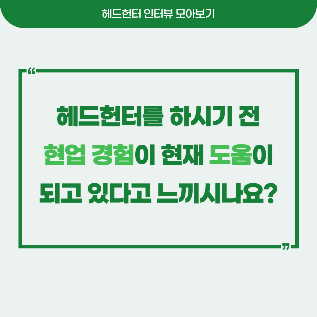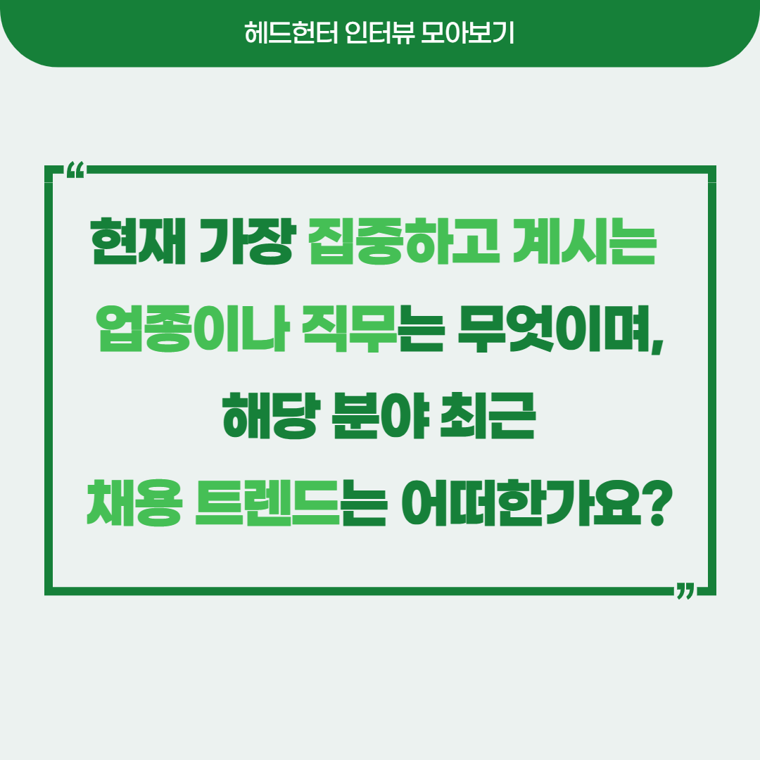 잡인덱스와 인터뷰를 진행했던, 같은 분야를 전문으로 하는 헤드헌터분들의 최신 인터뷰 답변을 모아 담아보았습니다 :)