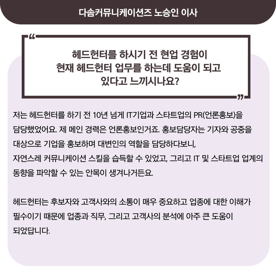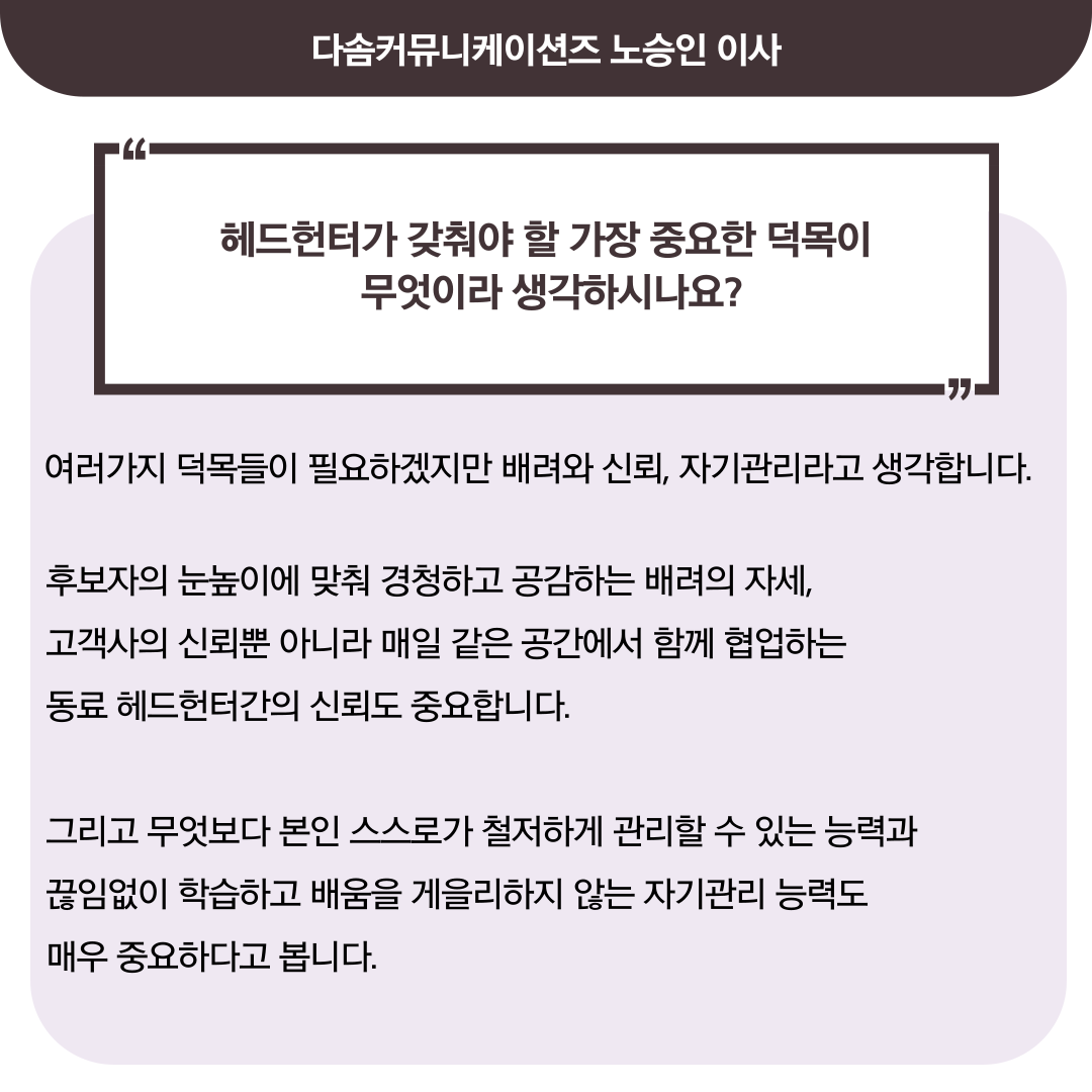 [헤드헌터 인터뷰 콘텐츠] 다솜커뮤니케이션즈 노승인 헤드헌터