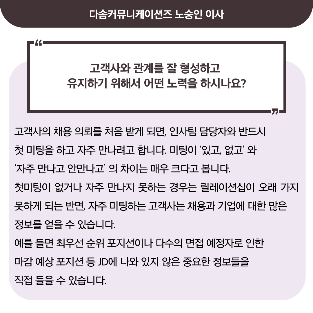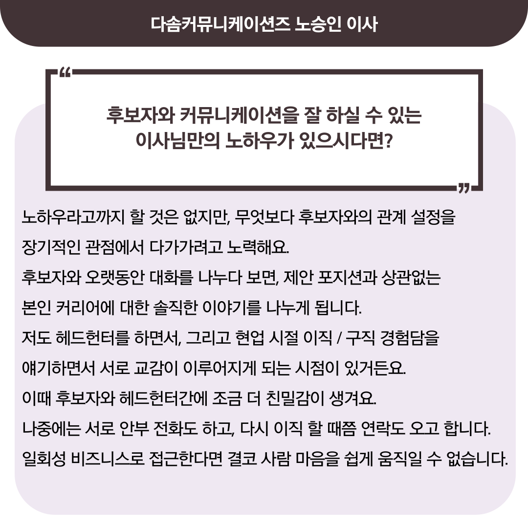 👉 다솜커뮤니케이션즈 노승인 헤드헌터 프로필 바로가기!