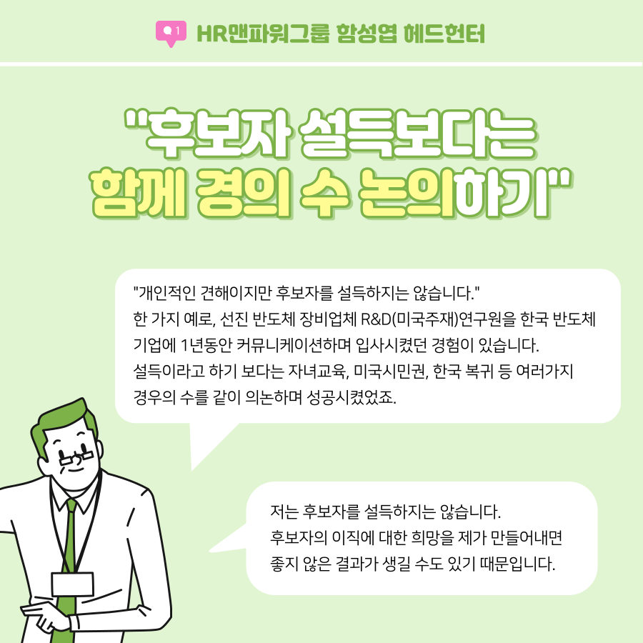 HR맨파워그룹 함성엽 헤드헌터, 피플케어코리아 하철호 헤드헌터, 맨쉬컨설팅 지용옥 헤드헌터의 인터뷰를 들여다볼까요?