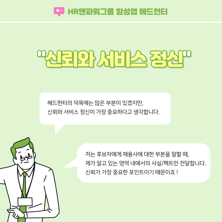 헤드헌터 분들마다 가지고 있는 장점이 다르실 텐데요, 오늘은 잡인덱스와 인터뷰를 진행했던 분들 중에서 고객사, 후보자와의 커뮤니케이션에 있어 신뢰를 바탕으로 소통하는 헤드헌터 분들을 모아봤습니다.
