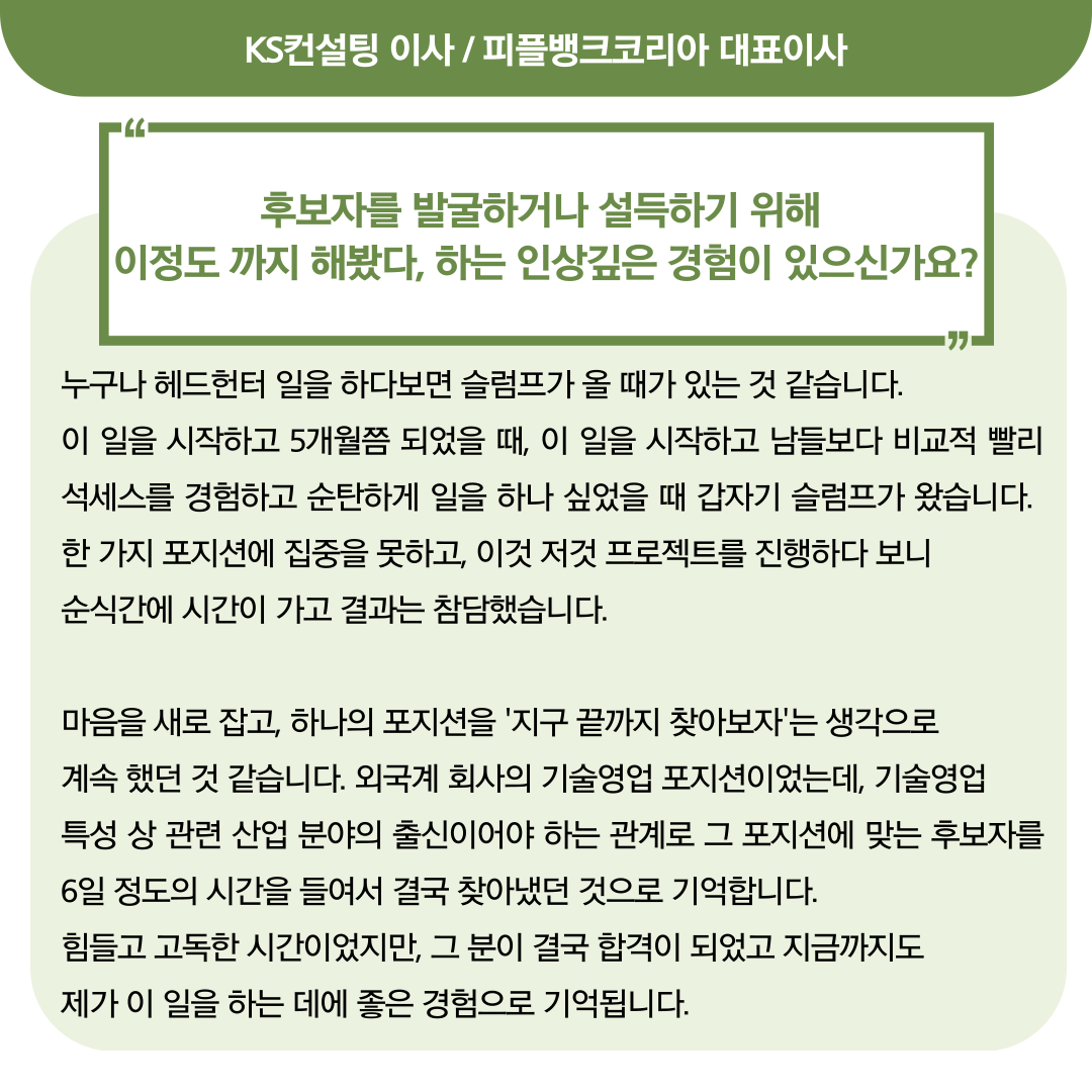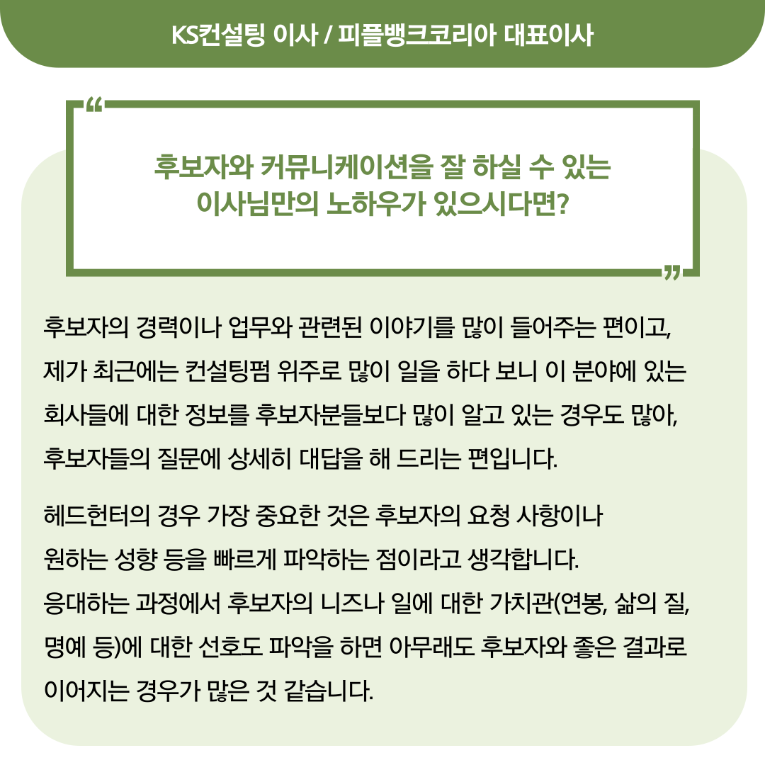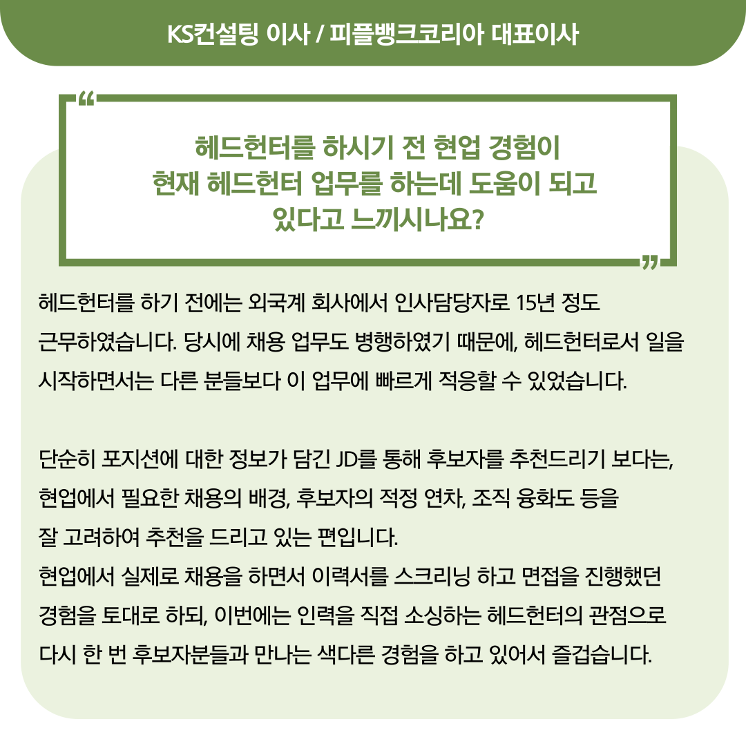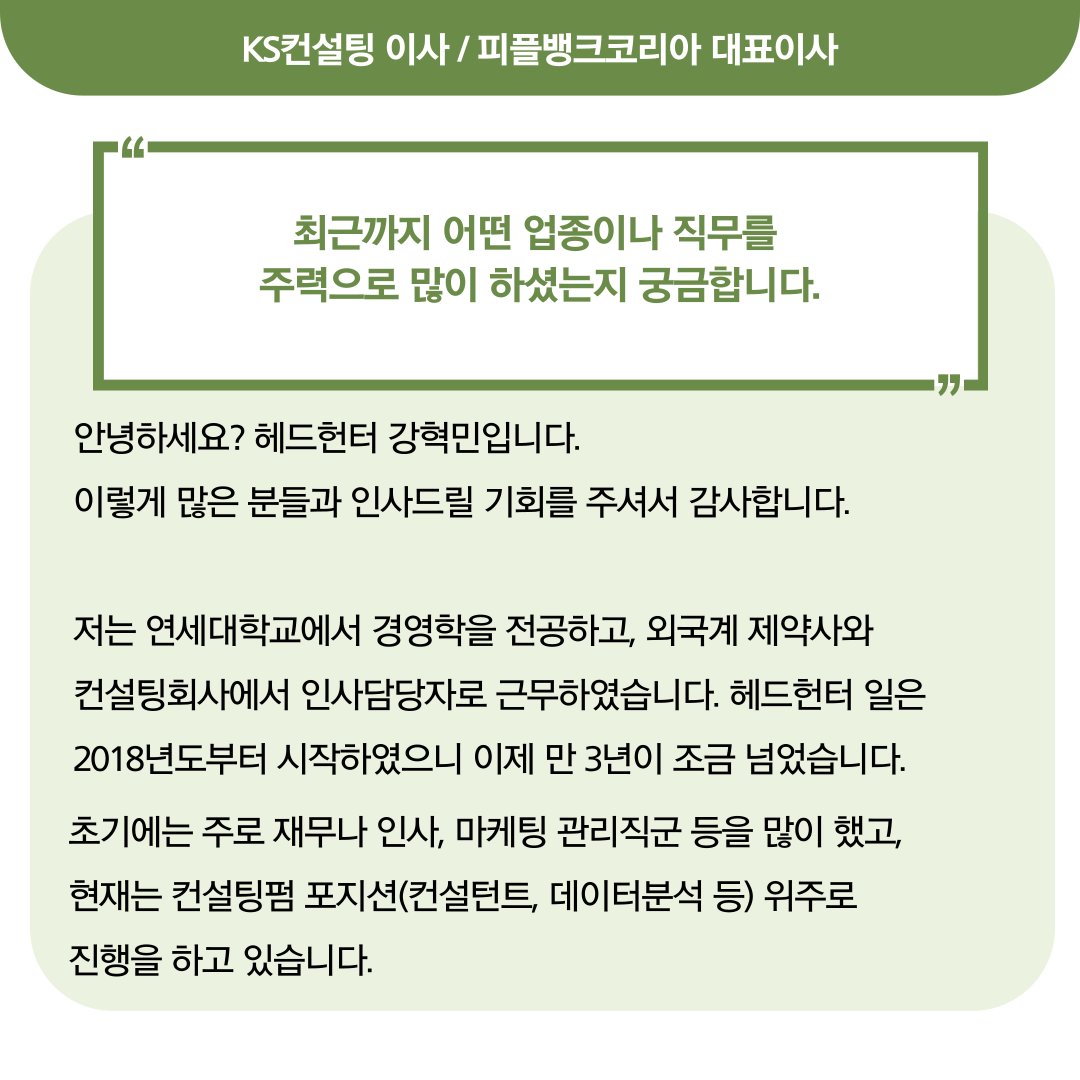 👉 KS컨설팅 / 피플뱅크코리아 강혁민 헤드헌터 프로필 바로가기!