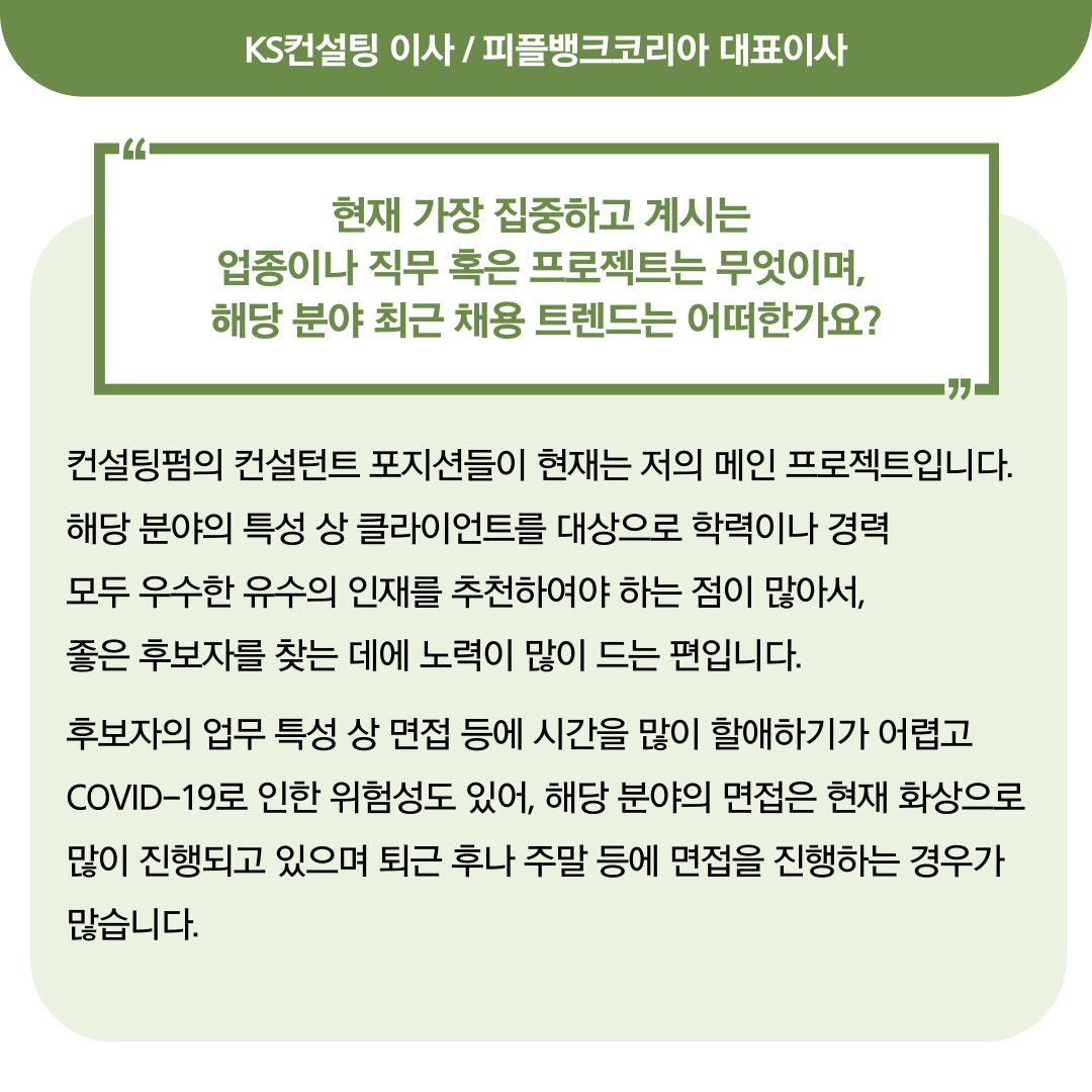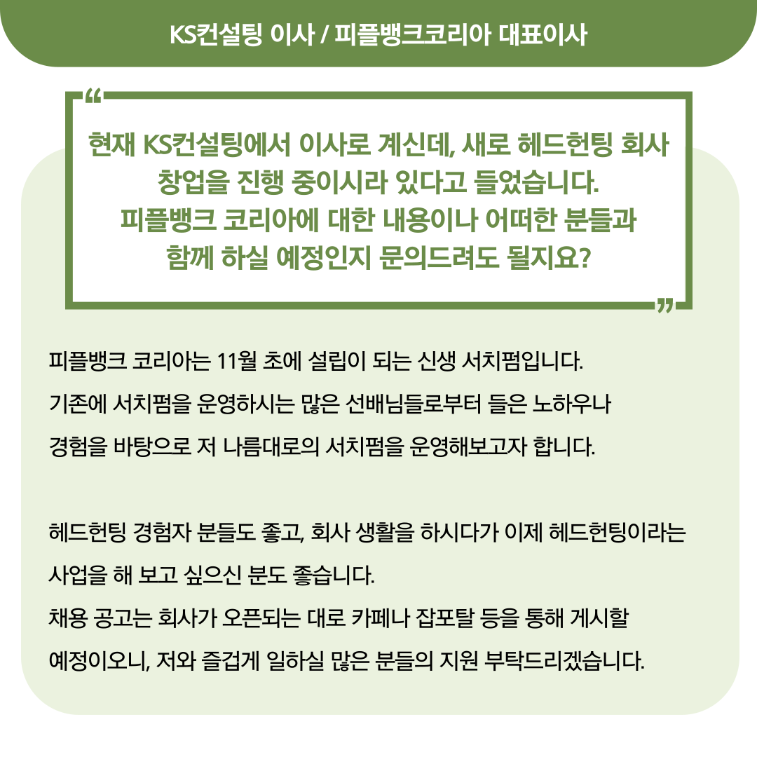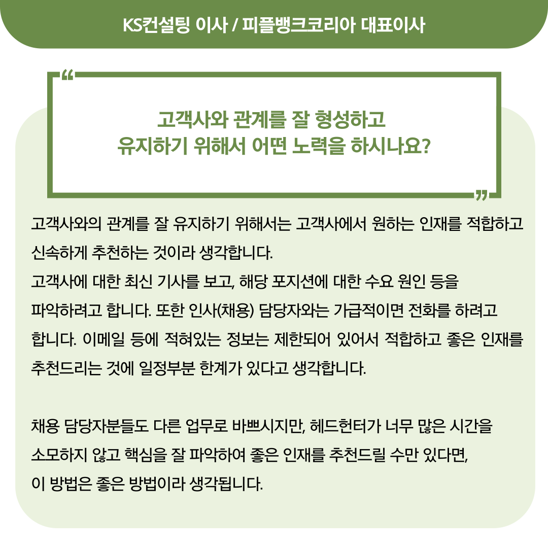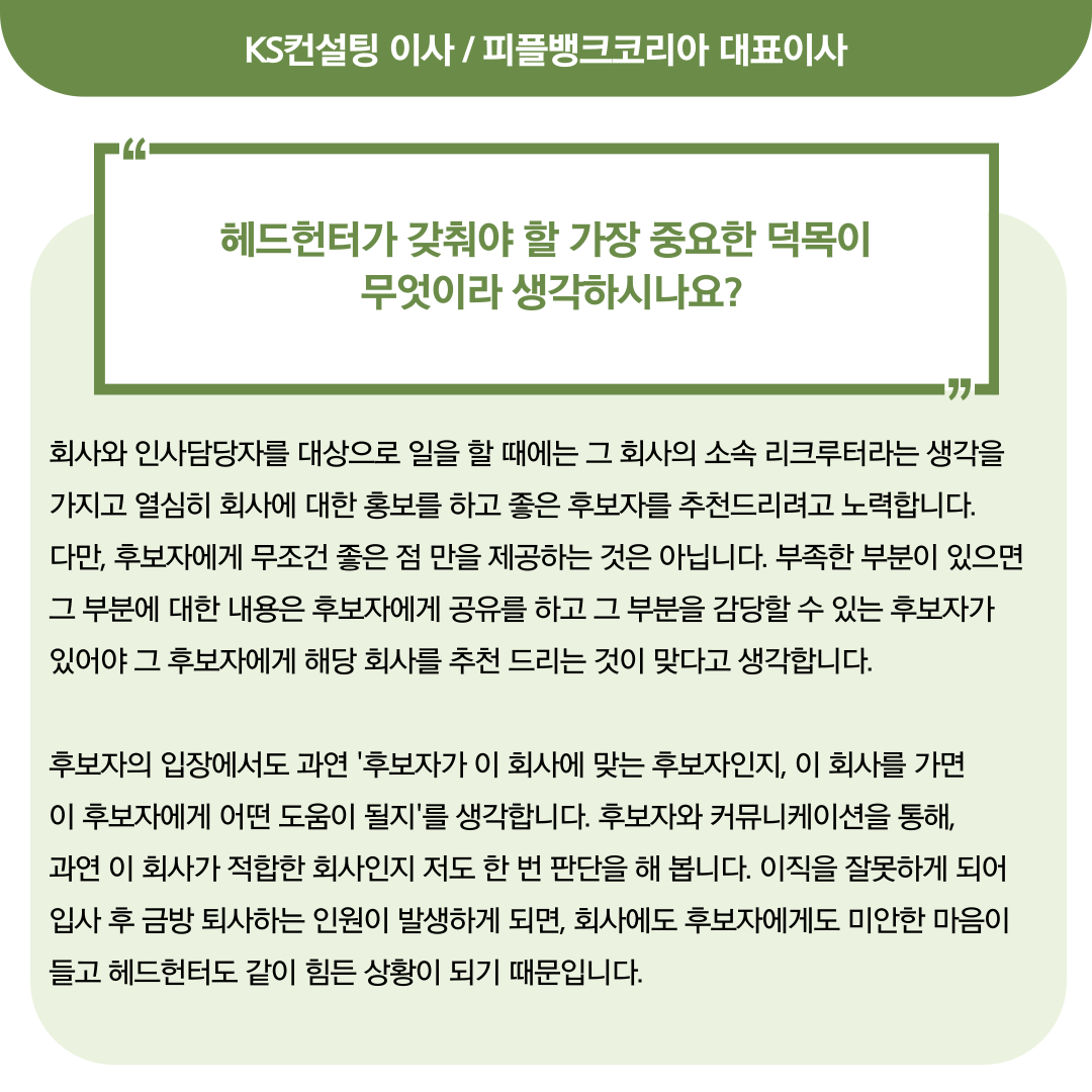 👉 KS컨설팅 / 피플뱅크코리아 강혁민 헤드헌터 프로필 바로가기!