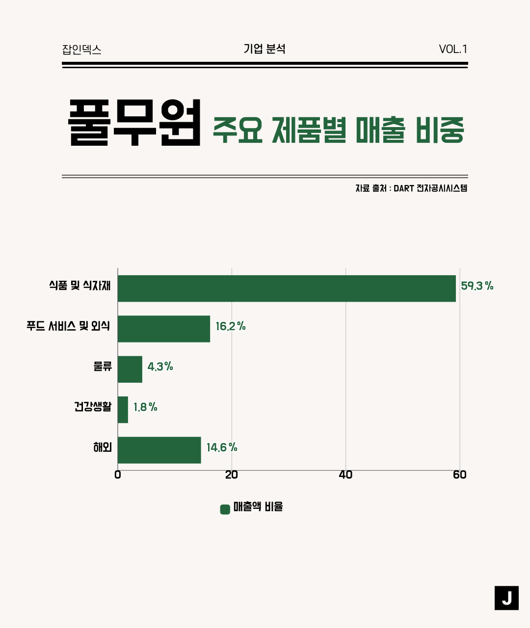 풀무원 연구개발 조직도, 제품별 매출 비중