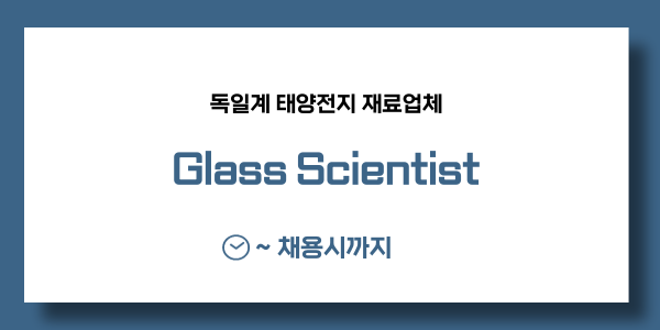 📢 [독일계 태양전지 재료업체] Glass Scientist (채용시까지)