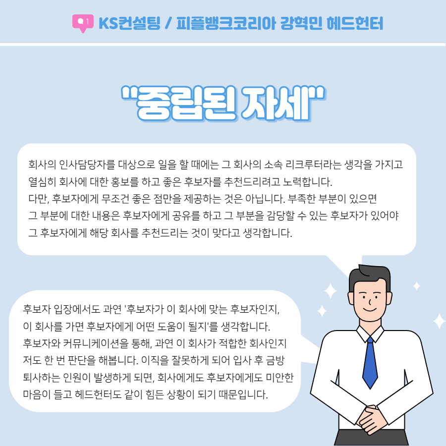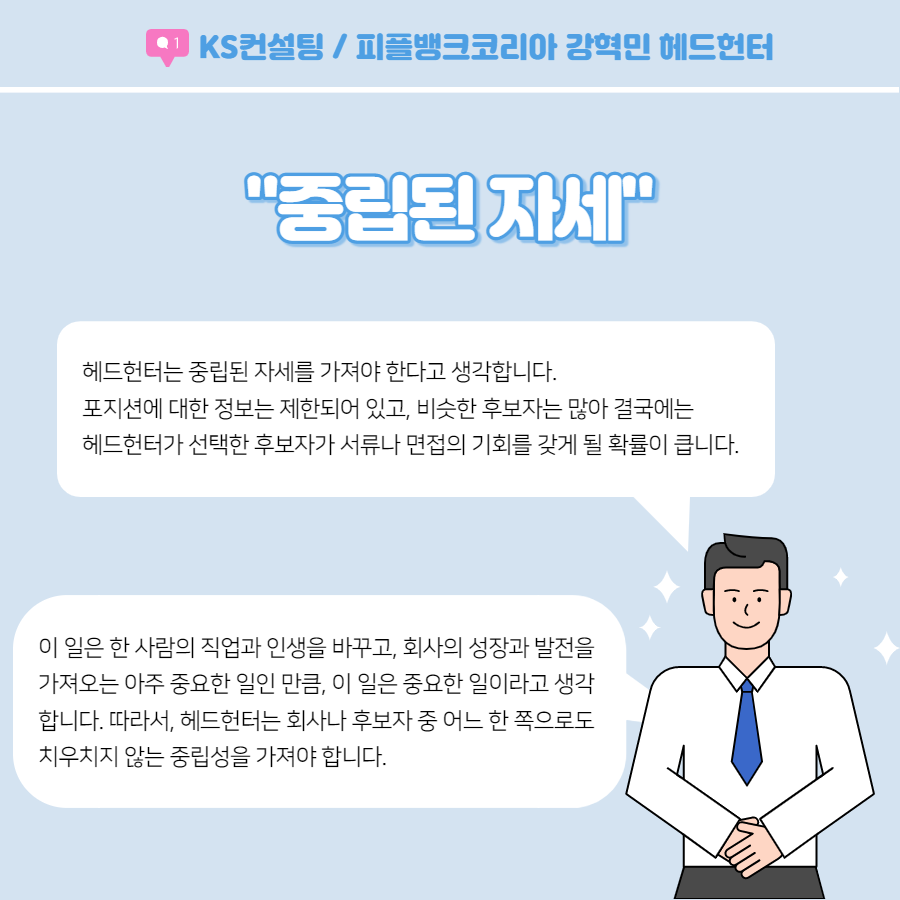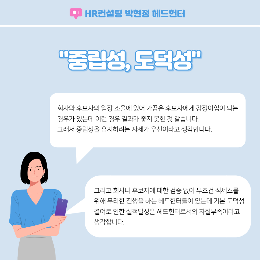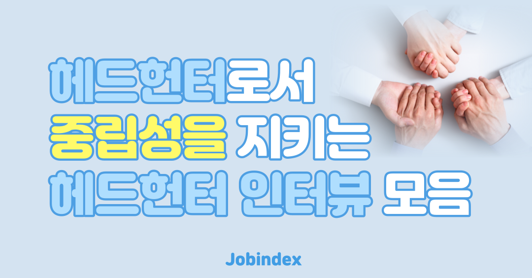 헤드헌터 분들마다 헤드헌터로서 중요하게 생각하는 덕목이 다른데요, 오늘은 잡인덱스와 인터뷰를 진행했던 분들 중에서 헤드헌터로서의 중립성을 중요시하는 헤드헌터 분들을 모아봤습니다.