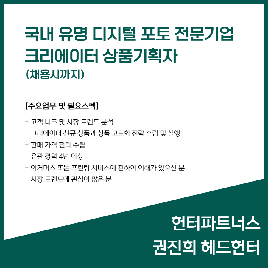 📢 [국내 유명 디지털 포토 전문기업] 크리에이터 상품기획자 (채용시까지)