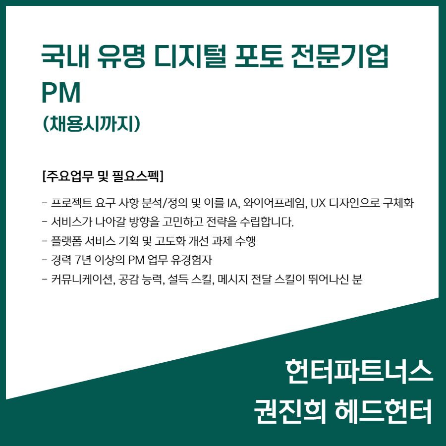📢 [국내 유명 디지털 포토 전문기업] PM (채용시까지)