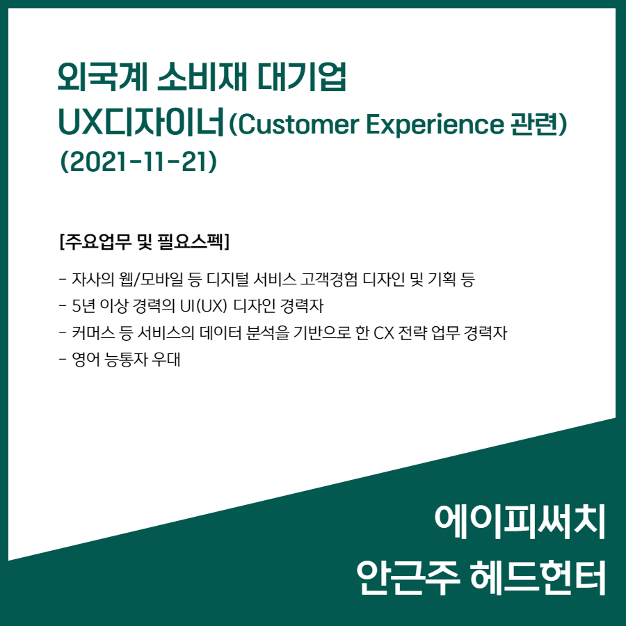 📢 [외국계 소비재 대기업] UX디자이너(Customer Experience 관련) (2021-11-21)