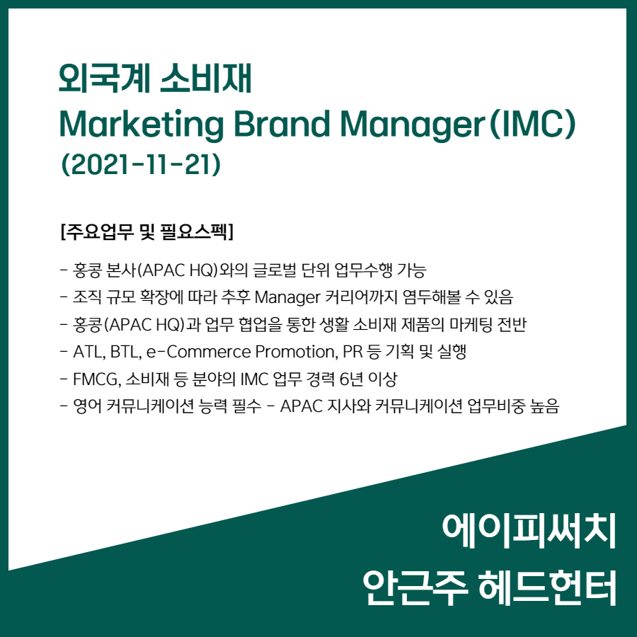 📢 [외국계 소비재] Marketing Brand Manager(IMC) (2021-11-21)