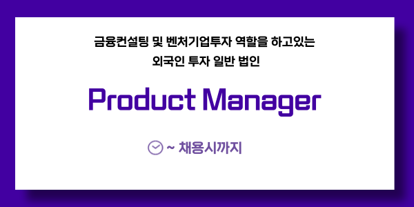 📢 [금융컨설팅 및 벤처기업투자 역할을 하고있는 외국인 투자 일반 법인] Product Manager - 채용시까지