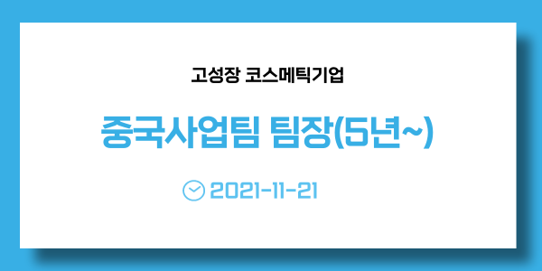 📢 [고성장 코스메틱기업] 중국사업팀 팀장(5년~) - 2021-11-21 까지
