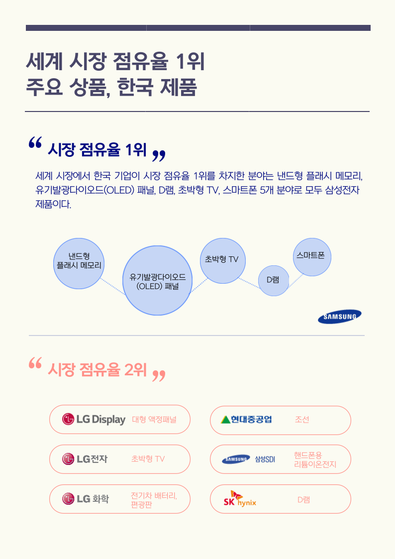 세계 시장 점유율 1위인 주요 한국 제품은 무엇일까요?