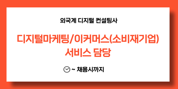 📢 [외국계 디지털 컨설팅사] 디지털마케팅/이커머스(소비재기업) 서비스 담당 - 채용시까지
